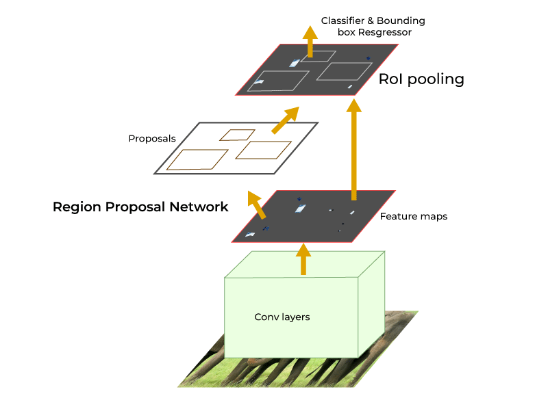 Per raggiungere il nostro obiettivo, adotteremo il metodo Faster R-CNN, una variante avanzata dell’architettura R-CNN che presenta diversi vantaggi significativi nell’ambito della rilevazione degli oggetti. Questo approccio offre un trade-off ottimale tra prestazioni di rilevamento e efficienza computazionale, consentendo una rapida ed efficace individuazione degli oggetti di interesse, come le buche stradali.
